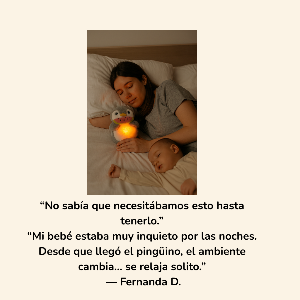 No es magia, es ciencia del sueño. El Pingüino del Sueño de Resting Baby está diseñado por expertos para calmar el sistema nervioso de tu bebé."